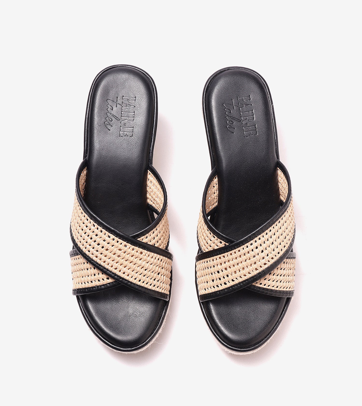 Woven Cross Strap Espadrille Wedges - Black
