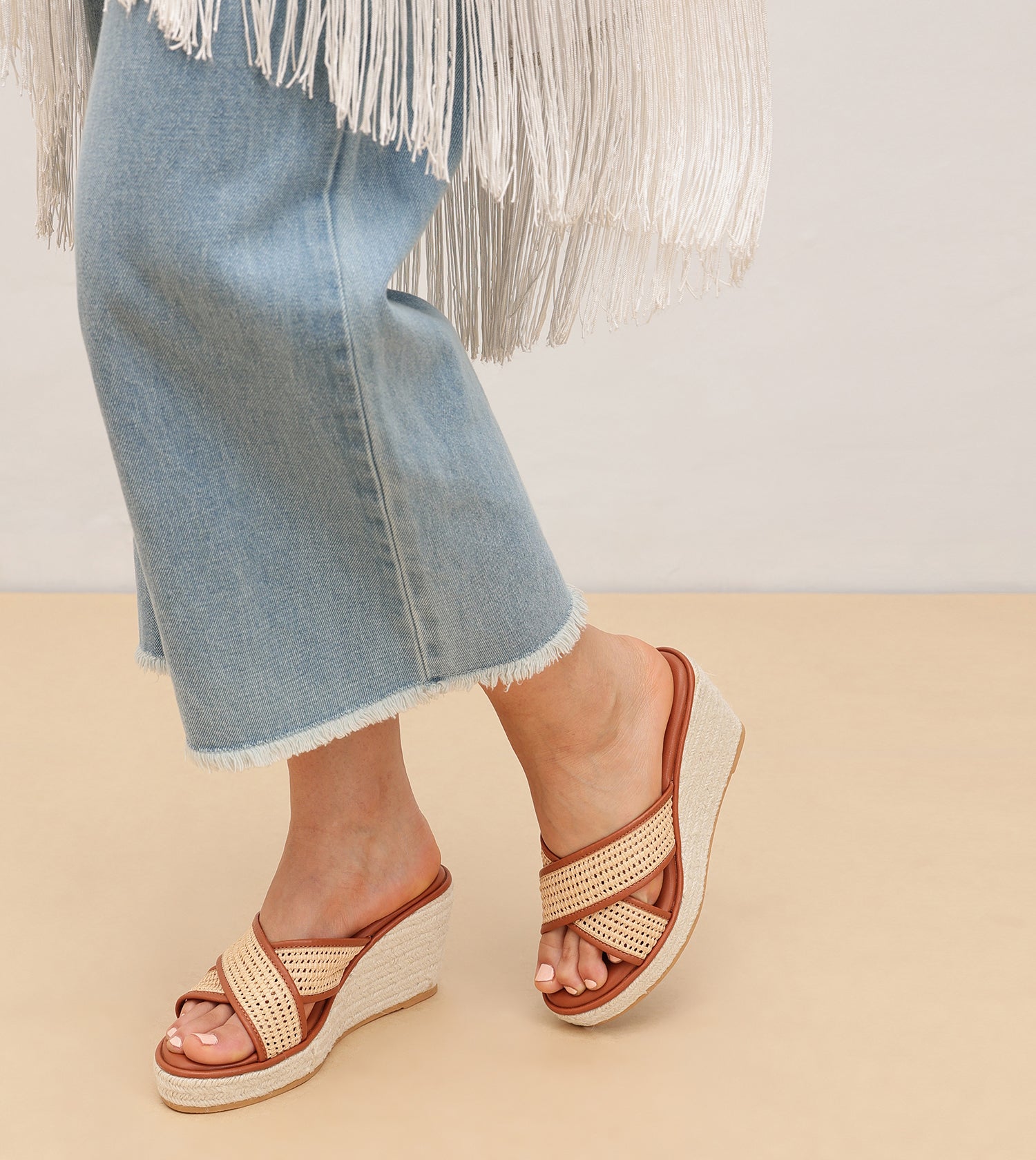 Woven Cross Strap Espadrille Wedges - Tan