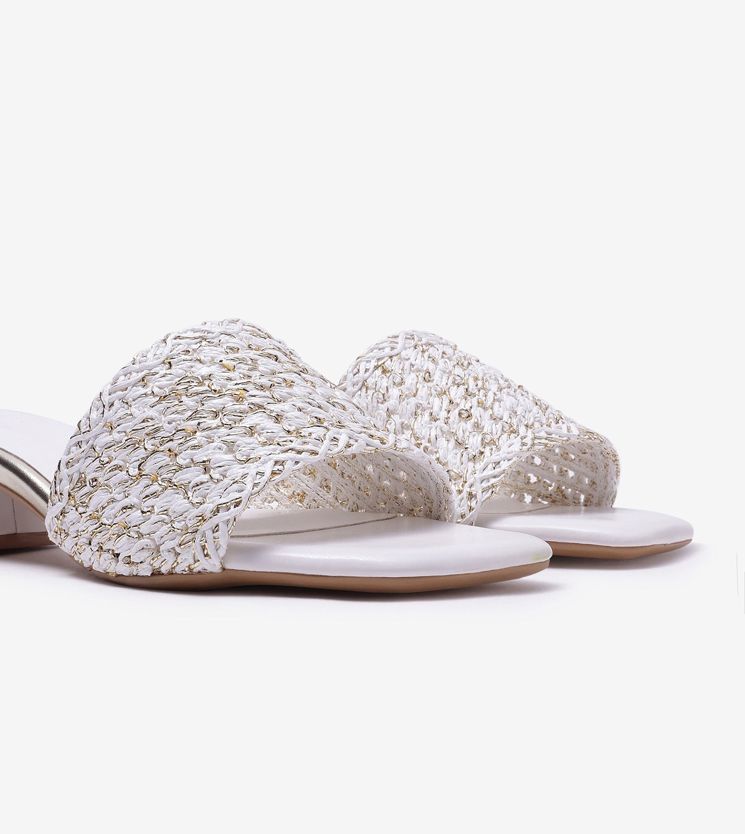 This heel features an intricately woven upper that brings texture and artisanal charm to the design. The open-toe construction adds lightness and ease, while the structured mid-height heel offers stability without compromising on style. Finished with a smooth footbed and clean contours, this pair blends refined detailing with effortless wearability, making it ideal for both special occasions and everyday moments.